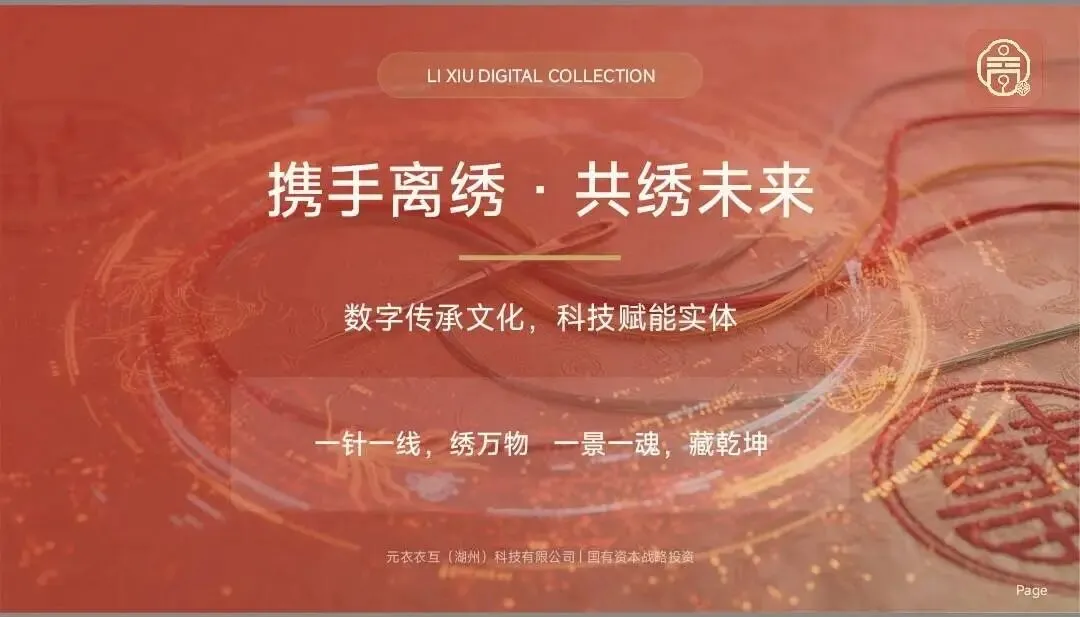 离绣文化依托湖州市国有资本战略投资,以非遗刺绣文化为核心,由张彩芳院士领衔的顶尖学术顾问团队保驾护航,凭借阿里/蚂蚁链等一线大厂技术基因、300万+用户增长经验与20亿+年交易流水的成熟运营能力,以及100+已签约头部文博非遗IP资源,打造行业唯一以“刺绣”为核心符号的一站式数字藏品生态平台,构建数实融合的文化数字化新生态。