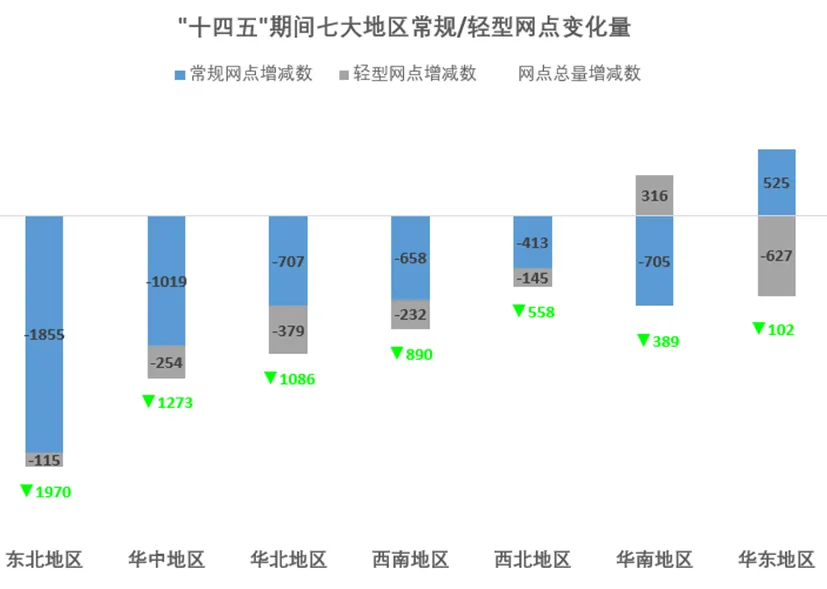 七大地区银行网点结构变化