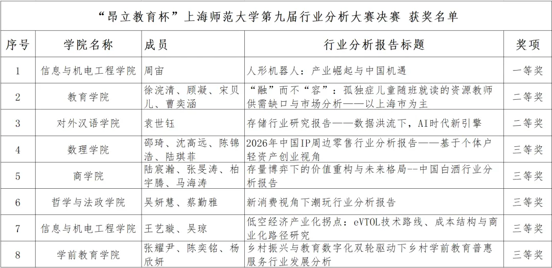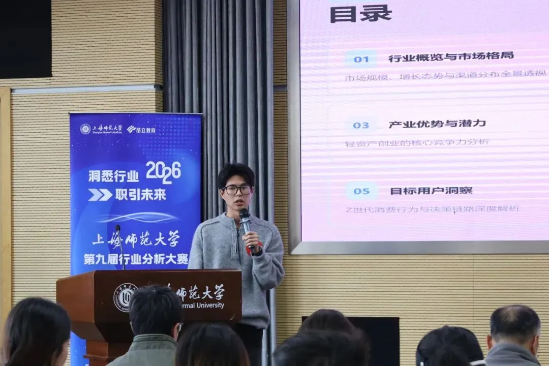 4月1日,“昂立教育杯”上海师范大学第九届行业分析大赛决赛在徐汇校区西部会议中心二号报告厅举行。本次大赛邀请了六位行业专家与校内外导师共同担任评委。