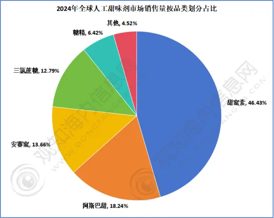 2024年全球人工甜味剂市场销售量按品类划分占比