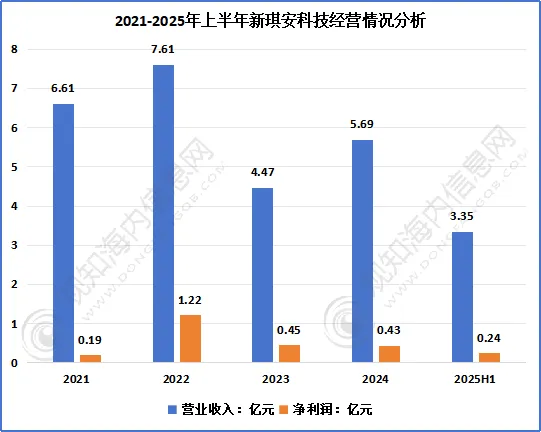 新琪安科技在全球甘氨酸制造行业排名第一,2024年新琪安科技营业收入为5.69亿元,净利润为0.43亿元,截止到2025年上半年新琪安科技营业收入为3.35亿元,净利润为0.24亿元。