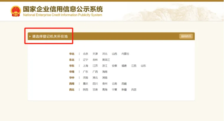 进入“国家企业信用信息公示系统”后,点击“企业信息填报”,选择“登记机关所在地”,点击“广东”,进入企业年报。