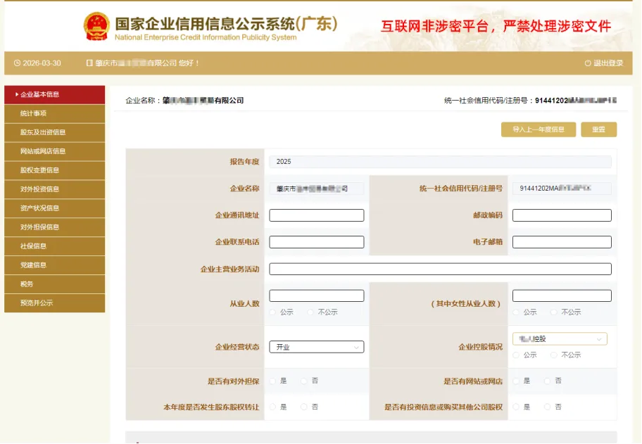 2025年度企业年报填报工作已经开始!