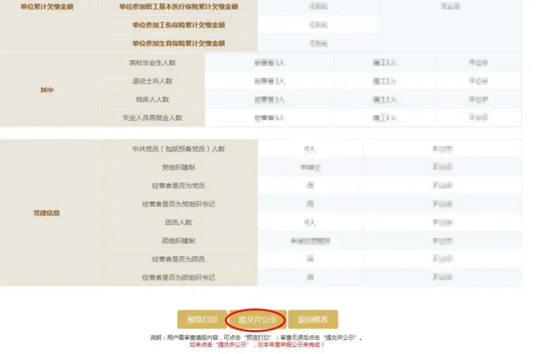 提交并公示后,如发现有部分内容填写错误的,在6月30日前可以登录年报系统页面进行修改。若发生修改,务必在修改后再次点击“提交并公示”,否则系统将显示为未完成年报状态!