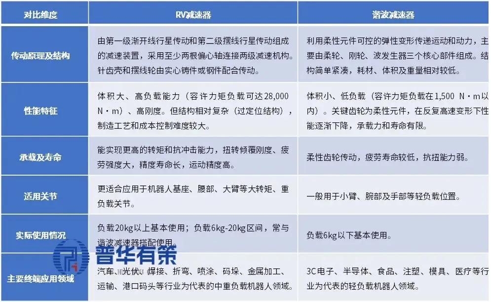 RV减速器和谐波减速器在工业机器人领域使用情况对比