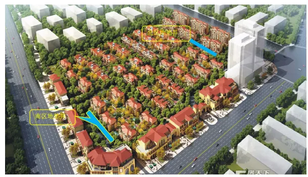 陕西西咸新区是在2014年1月经国务院批准设立的首个以创新城市发展方式为主题的国家级新区。西咸新区从2015年起就探索新型供热模式,破解城市清洁供热难题。图6-15为陕西西咸新区沣西新城无干扰地热能供暖项目(三期)一标段枫溪美郡区域中深层无干扰地热能供暖工程图。总建筑用地面积8.6万m2,设计采用中深层地热岩供热技术,其中共设计6口换热井,分别位于背景工程南北区各3口,井深2500m,井间距15m[20]。