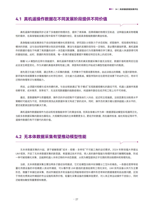 ? 白皮书判断:未来不是二选一,而是混合使用。真机数据做“精调”,无本体数据做“预训练”。