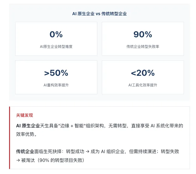 AI 原生企业天生具备"边缘 + 智能"组织架构,无需转型,直接享受 AI 系统化带来的效率优势