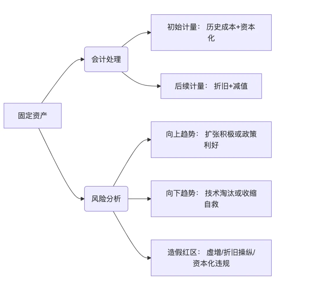 1. 固定资产是企业经营的“硬实力”。其核心价值在于支撑长期生产能力,但高占比需警惕技术淘汰风险(如传统制造业)。趋势上升多源于产能扩张,下降常关联资产处置。
