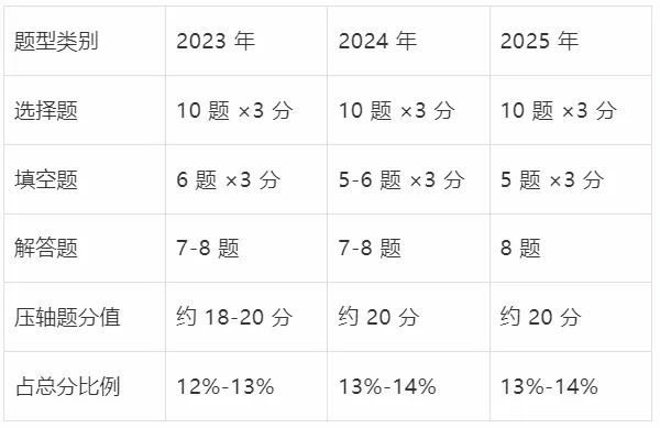 2.1 题型结构与分值分布