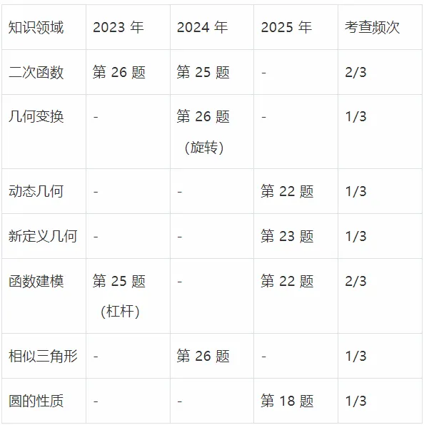 例如,2024年第 26 题的旋转问题,其解题思路涉及高中数学中的"隐圆"概念。虽然题目没有直接使用高中术语,但要求学生具备将几何问题转化为圆的问题的能力,体现了初高中学段的衔接。