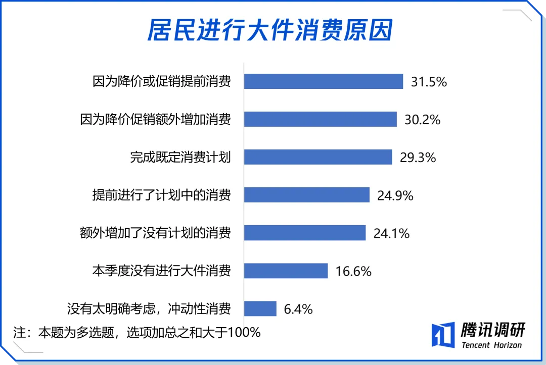 大件消费上,“因为降价促销提前消费”(31.5%)、“因为降价促销额外增加消费”(30.2%)、“完成既定消费计划”(29.3%)是三大主因,“冲动性消费”仅占6.3%,价格激励和既定计划是主要释放动力,计划型特征较为突出。春节消费数据也印证了消费理性这一特征,马年春节消费整体呈现理性务实、性价比优先的特点。
