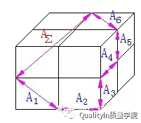 空间尺寸链:尺寸链全部尺寸位于几个不平行的平面内。