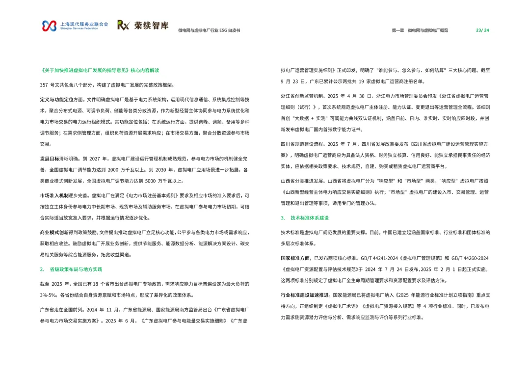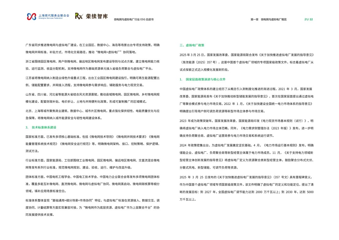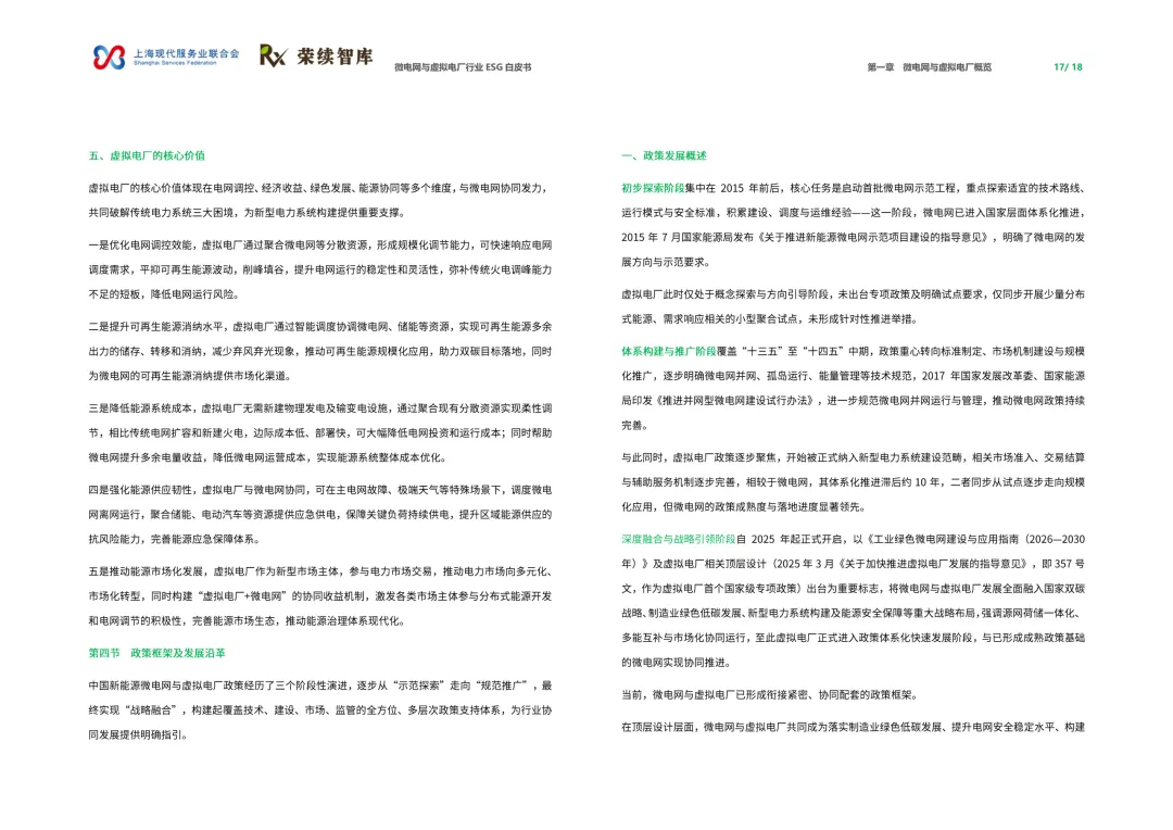这份白皮书全面梳理了微电网与虚拟电厂的技术、政策、商业模式与实践案例,明确二者是新型电力系统的关键支撑,深度契合ESG理念。当前中国微电网已形成超300个工业绿色项目规模,虚拟电厂2025年市场规模预计破1500亿元、聚合资源达1.2亿千瓦,政策设定2027年、2030年调节能力分别达2000万、5000万千瓦的目标。行业正从示范试点迈向规模化应用,但也面临技术标准、市场化机制、电网协同等挑战,未来将成为能源绿色低碳转型的核心载体。