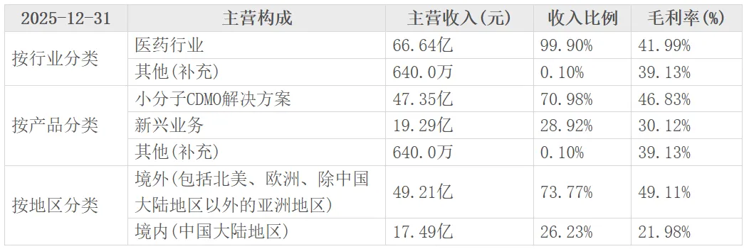 2025年度新增客户超300家,来自大制药公司收入29.16亿元,同比增长8.36%;来自中小制药公司收入37.55亿元,同比增长20.57%。