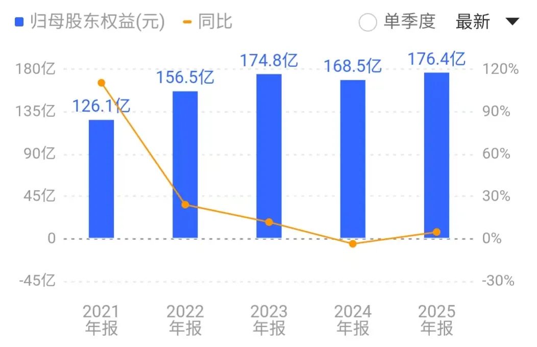 净资产数据,持续稳定增长的趋势,2025年上涨幅度不错,2024年略有回撤。