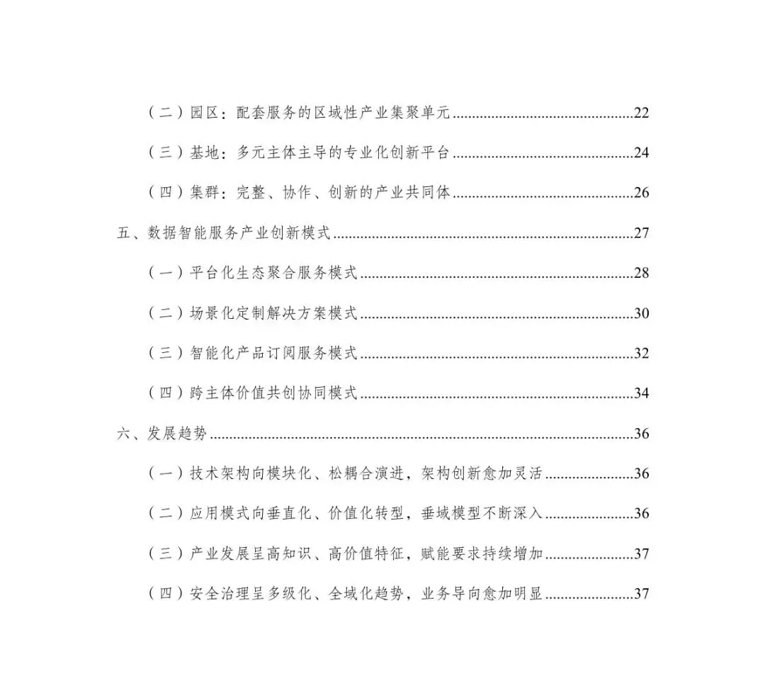 四大服务模式创新:形成平台化生态聚合、场景化定制解决方案、智能化产品订阅、跨主体价值共创四大模式,适配不同企业与行业需求。 四类产业载体成型:构建企业、园区、基地、集群四级载体体系,数据标注基地、AI中试基地加速落地,产业集聚效应持续凸显。 企业发展路径分化:形成技术驱动、解决方案、平台赋能三类企业路径,分别聚焦底层技术、垂直行业、生态平台,差异化竞争格局形成。