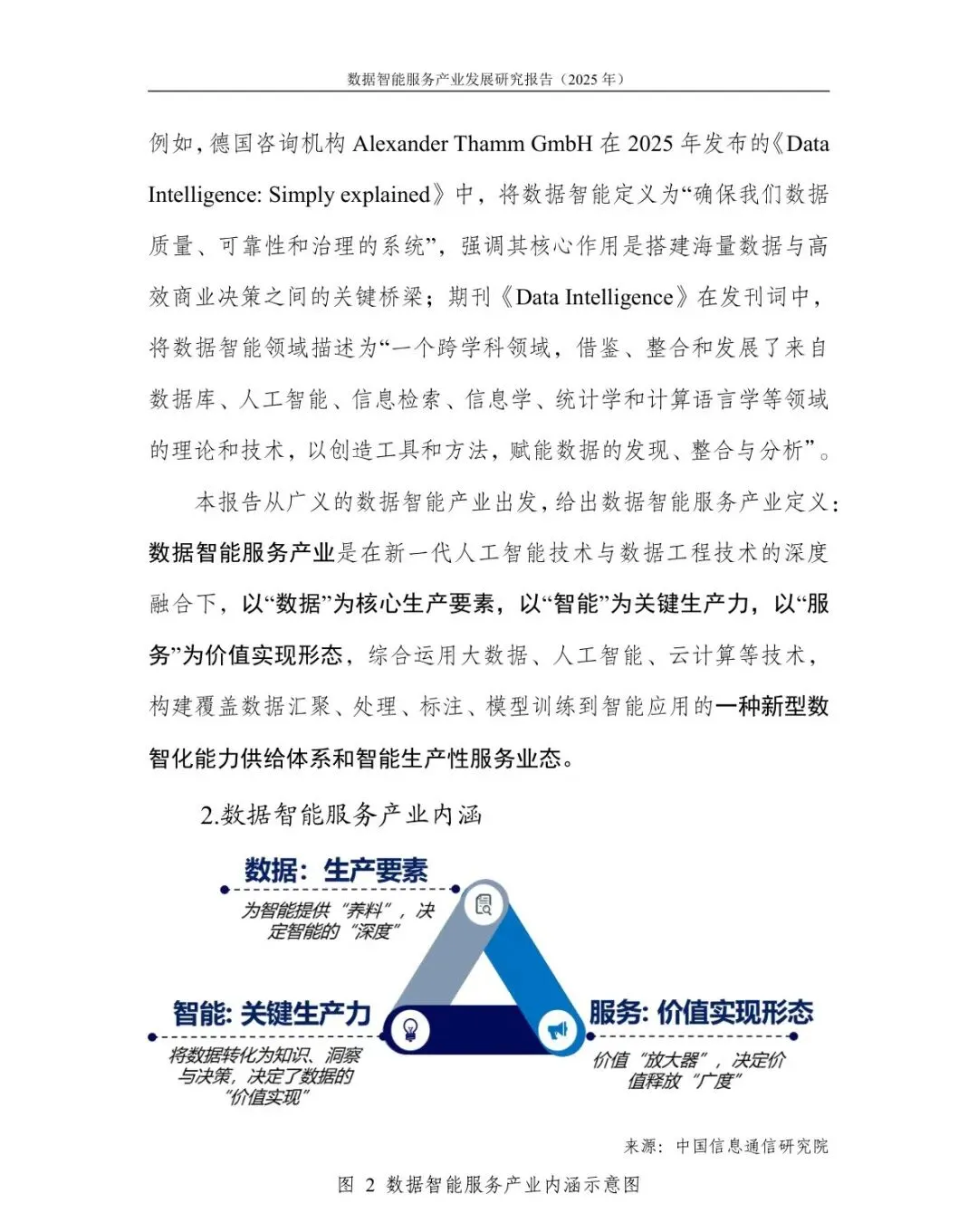 产业定义清晰成型:数据智能服务是以数据为核心要素、智能为生产力、服务为价值形态的新型数智化生产性服务业,区别于传统大数据与AI产业,核心是创造新信息、释放数据价值。 全球格局三足鼎立:美国主导原创技术与生态,欧盟引领规则标准,中国依托海量数据与超大市场成为全球应用高地,企业数量超40万家,集聚京津冀、长三角、粤港澳三大高地。 全链条生态完善:形成技术、资源、产品等八大核心要素,构建基础层-技术层-应用层-支撑层完整产业链,覆盖数据汇聚、处理、标注、训练到智能应用全流程。