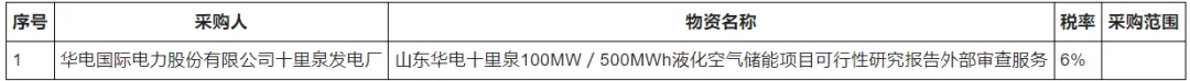 华电国际项目管理有限公司山东华电十里泉100MW/500MWh液化空气储能项目可行性研究报告外部审查服务询比采购公告