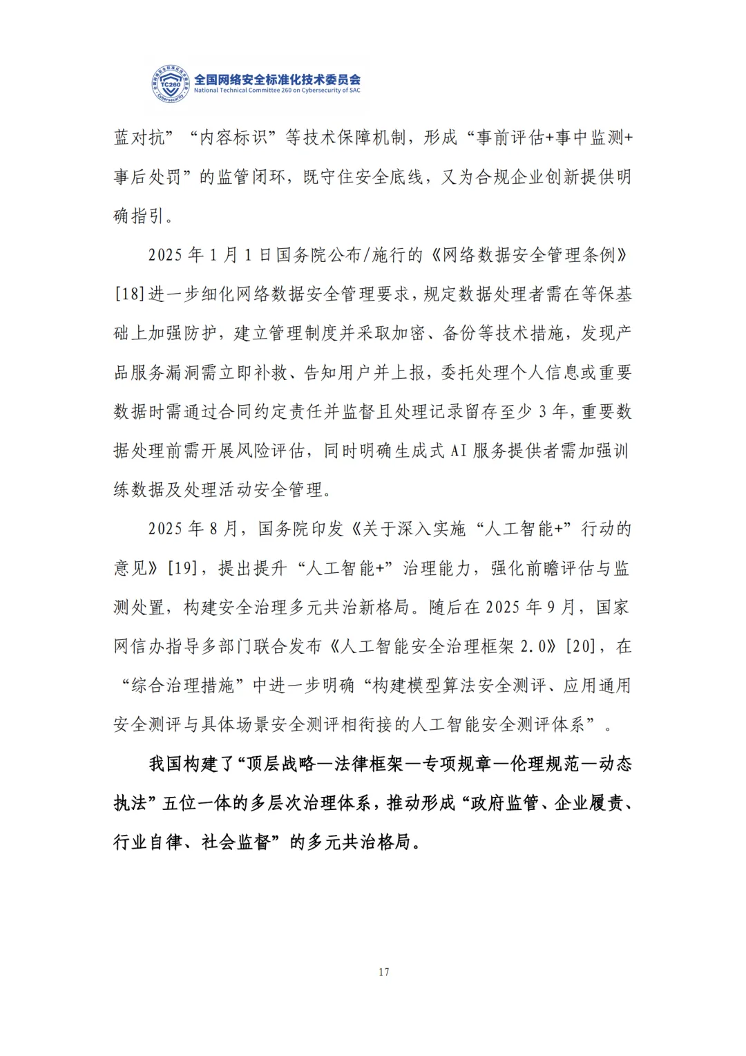 国内政策:形成顶层规划 + 三大法律(网安 / 数据 / 个保法)+ 专项规章 + 伦理规范 + 执法行动的多层次治理体系,2026 年网安法修订首次增设 AI 专条。