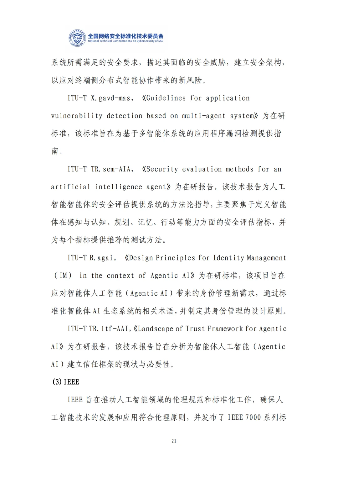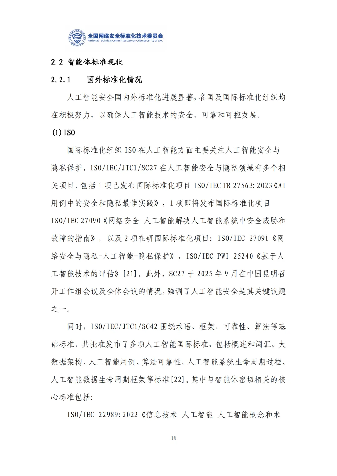 标准现状:国际 ISO/IEC/ITU 已启动智能体安全标准;国内 TC260、TC28 主导,已发布生成式 AI 安全、数据标注等标准,智能体互联、安全要求等在研。