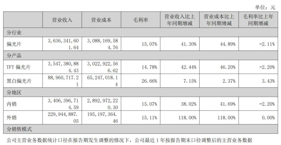 深纺织A则营收微降,营业总收入32.41 亿元,同比微降 2.82%;归母净利润 6841.87 万元,同比降 23.44%。偏光片“量增价减”,让毛利率同比掉了 7.48 个百分点,仅余 14.96%。好在境外收入爆发,3.69 亿元同比增 127.91%,成了营收增长的关键增量。