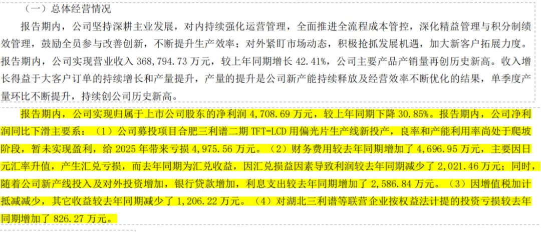 2025 年,三利谱、深纺织 A、纬达光电三家偏光片企业营收呈现 “一增两降” 分化格局,但净利润均出现不同程度下滑,行业整体盈利压力显著攀升。