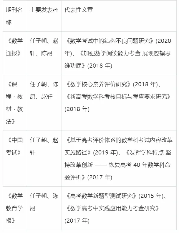 通过对中国知网、万方数据库等权威学术平台的检索,这些命题专家在数学教育和高考命题领域发表了大量高质量的学术论文,主要集中在以下核心期刊: