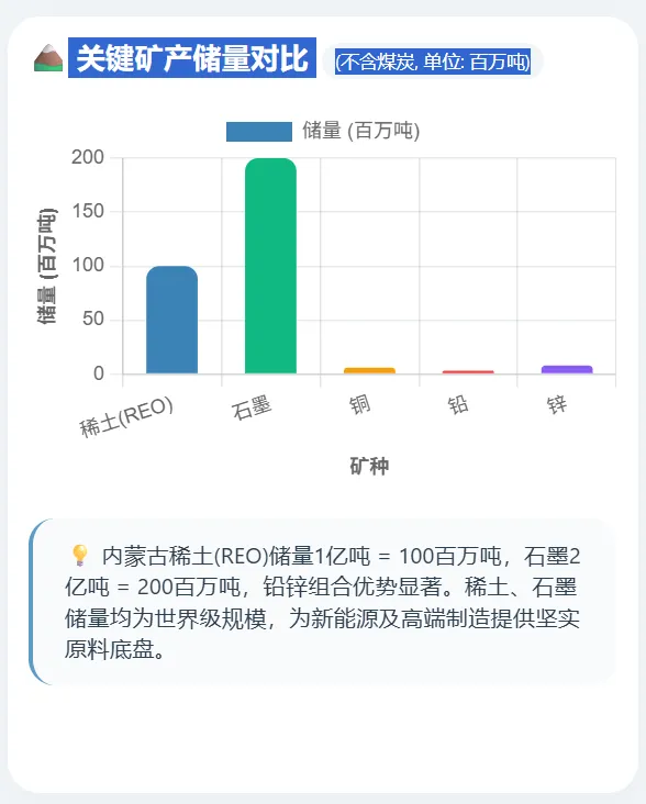 借鉴山西煤炭转型(就地转化率升至50%)、江西稀土整合(氧化镨钕价格翻倍)、智利铜业治理(社区利益共享)。内蒙古战略定位:世界级矿产资源绿色开发利用示范区。近期目标:稀土就地加工转化率提升至50%,引进3-5家永磁电机龙头企业;煤炭就地转化率提升至50%,建设百万吨级CCUS示范。