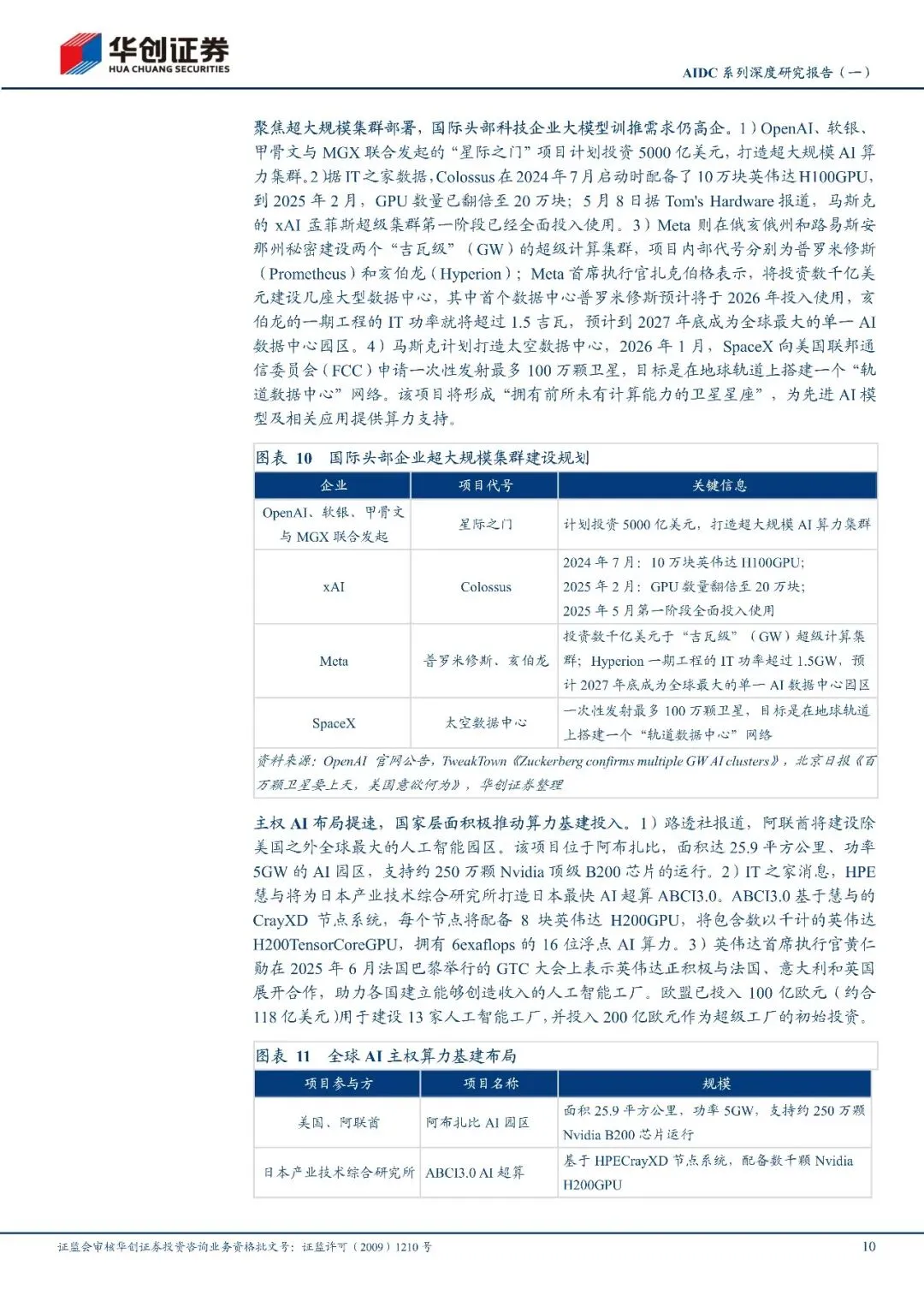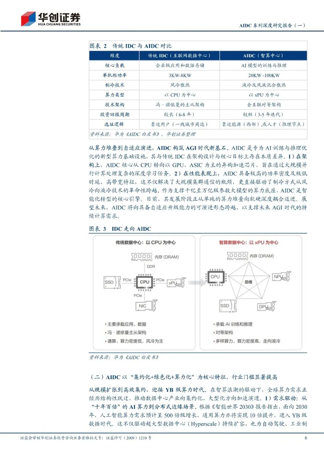 集约化:根据华为《AIDC白皮书》,单机柜功率由传统3-8KW升至20KW以上,高端场景突破100KW,产业向超大规模集群集中,头部加速10万卡级集群建设;