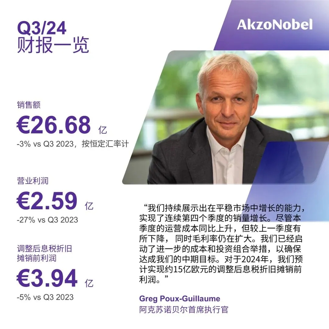 阿克苏诺贝尔发布2024第三季度财报