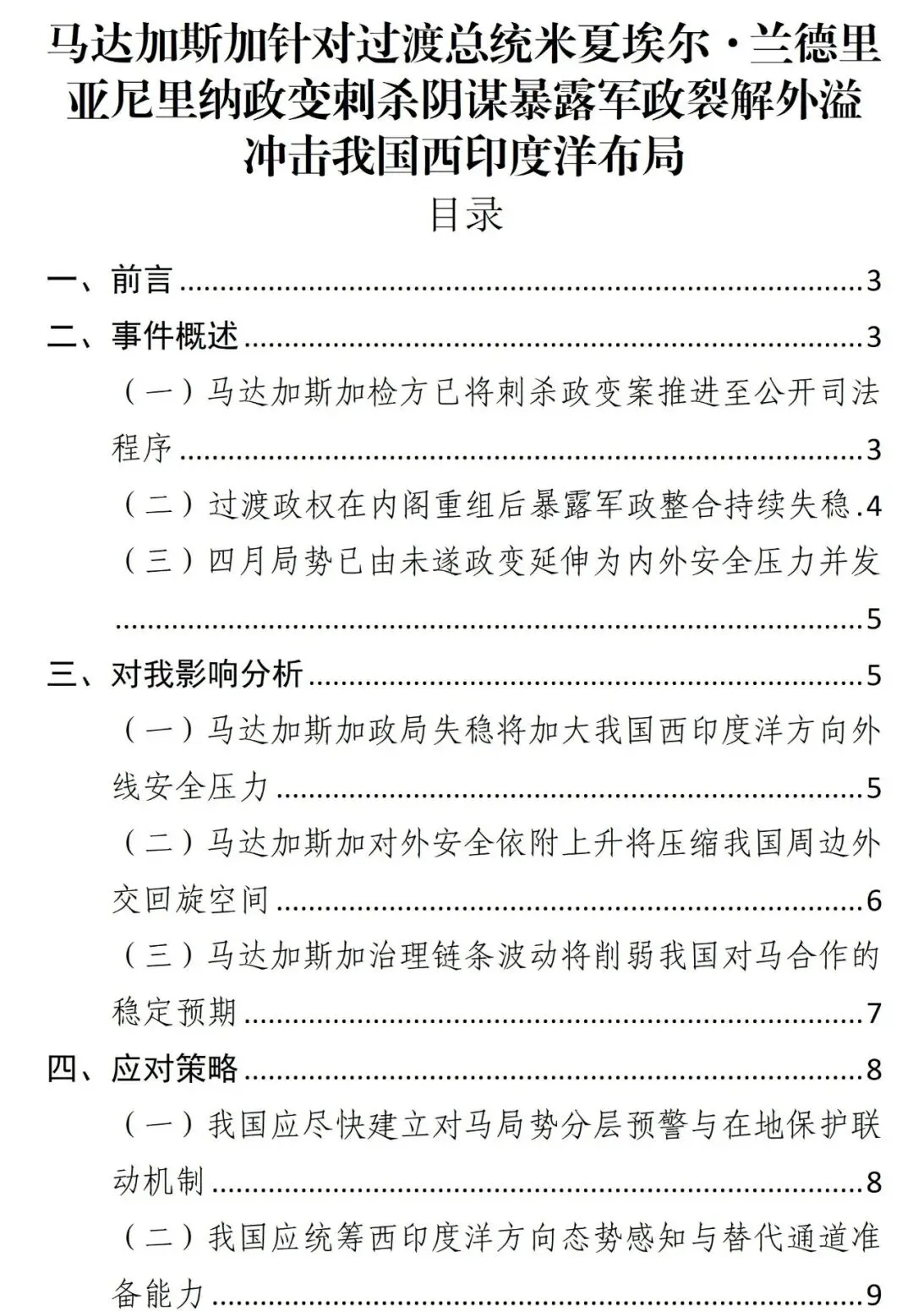 马达加斯加针对过渡总统米夏埃尔·兰德里亚尼里纳政变cs阴谋暴露军政裂解外溢冲击我国西印度洋布局