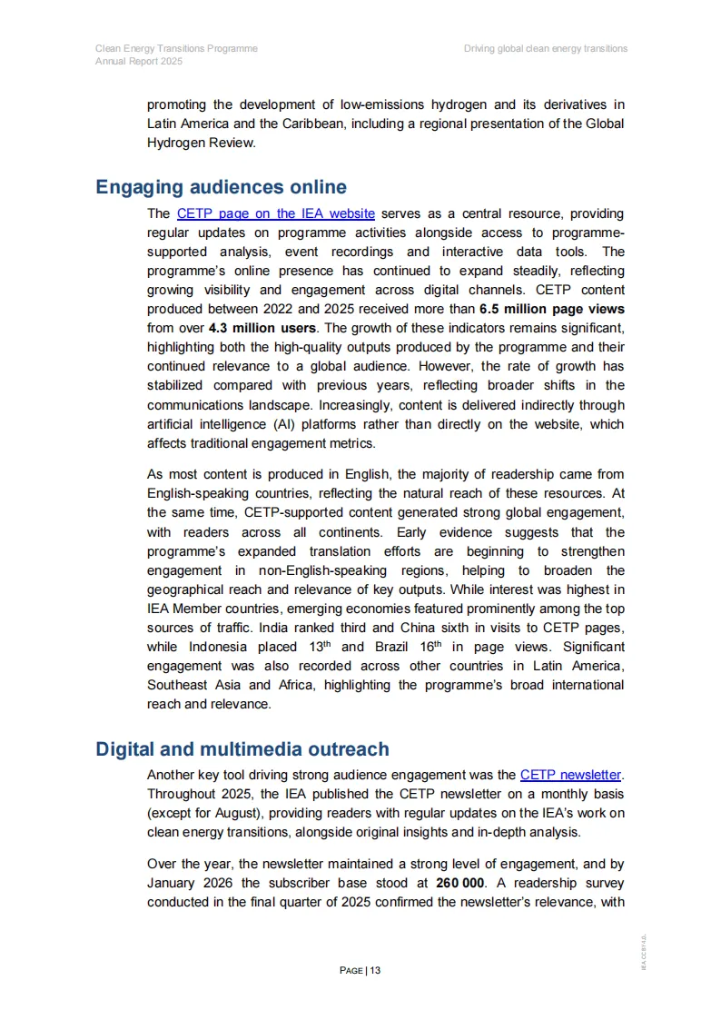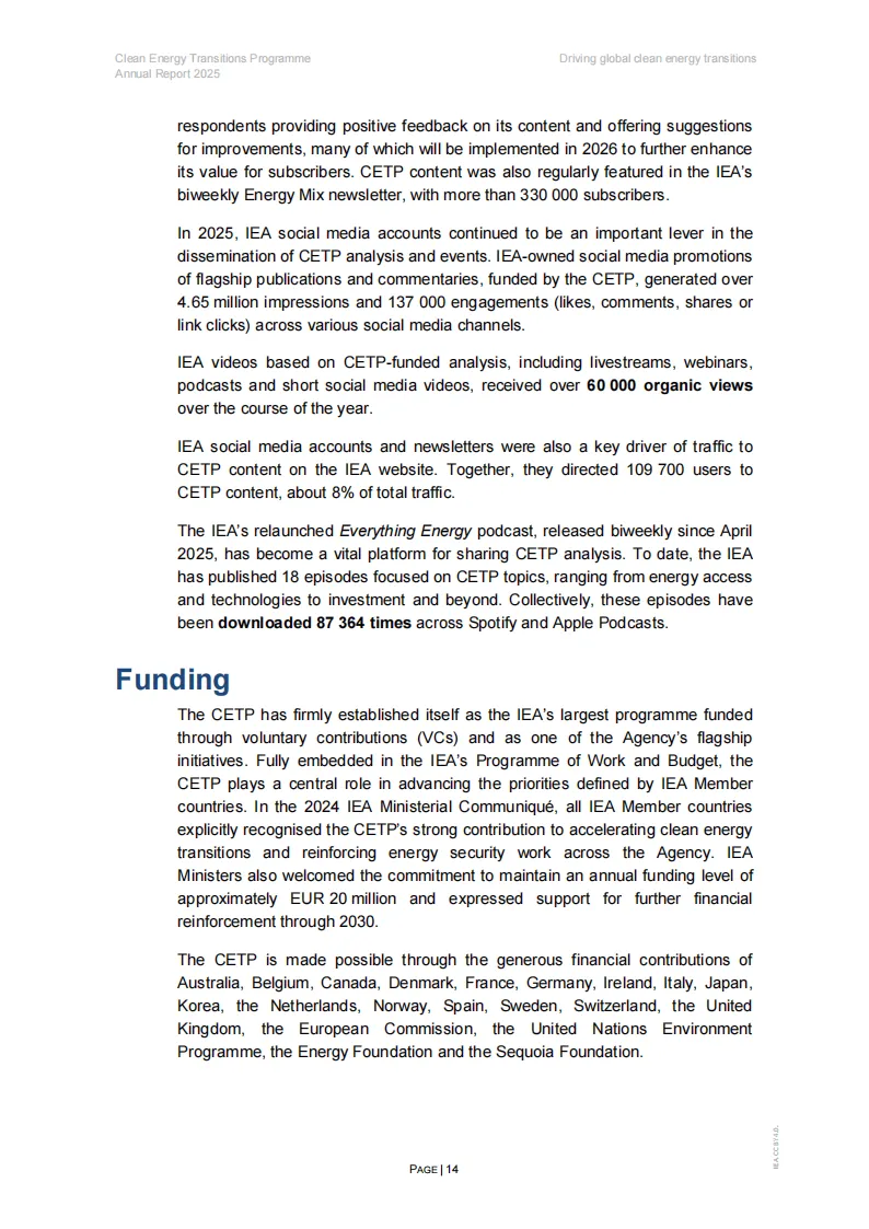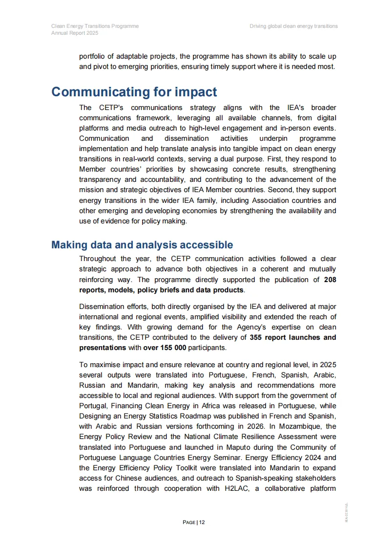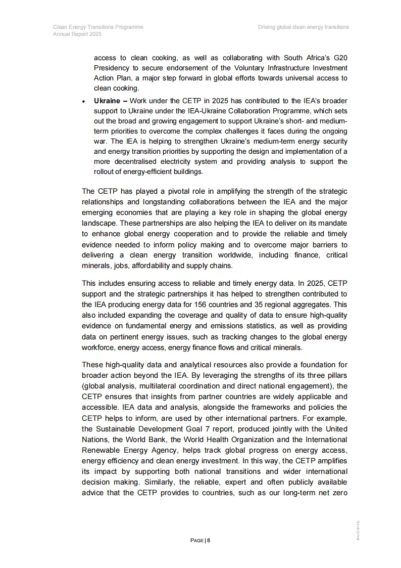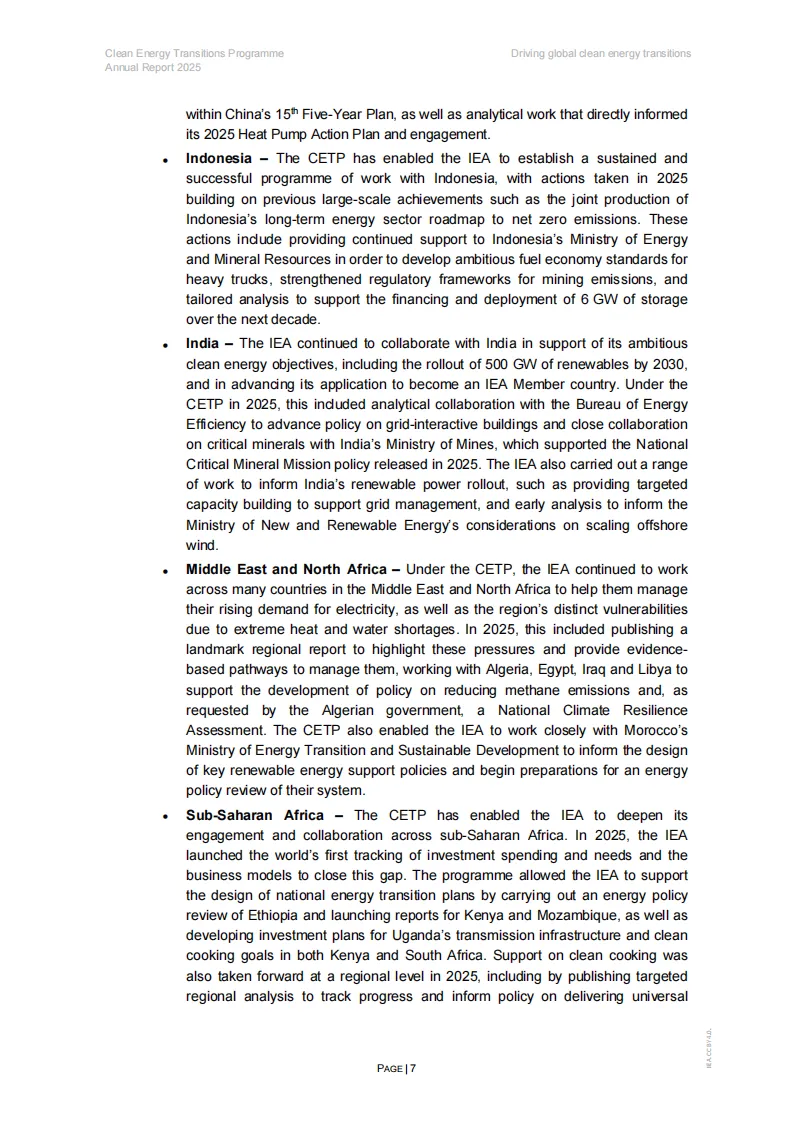 国际能源署(IEA)的清洁能源转型计划(CETP)2025年度报告,聚焦全球清洁能源转型进程,通过三大支柱性工作推动各国向安全、可负担、可持续的能源体系转型,尤其侧重新兴市场和发展中经济体的转型需求。