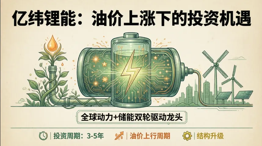 截至2026年3月,国际油价大幅上涨,WTI/布伦特突破90-100美元/桶,地缘冲突+供给收紧+低库存共振,高油价已成中期趋势。这一背景对亿纬锂能形成极强、直接、可持续的投资催化: