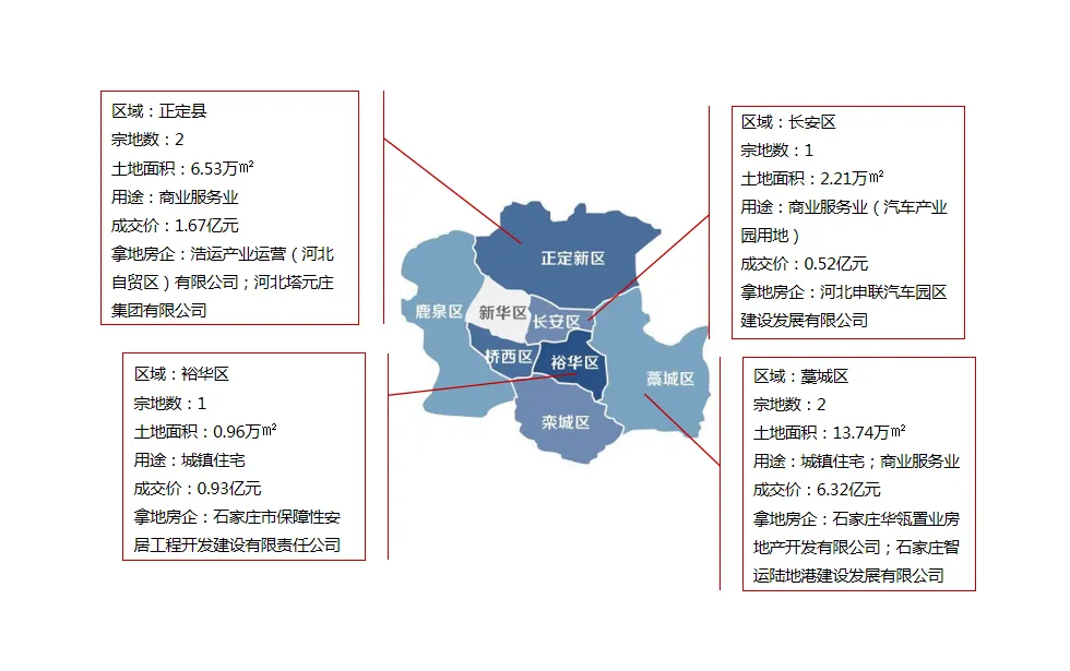 2026年3月,石家庄市(含正定新区)共供应土地16宗(含补证地块),含4宗住宅用地、1宗住宅商服用地、2宗商服用地、1宗科研用地、8宗工业用地,总面积约42.46万平米(约合636.83亩),总起始价约为15.95亿元。