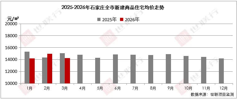 根据世联监测,2026年3月,全市成交均价为14219元/㎡,环比下降5%,同比下降6%。