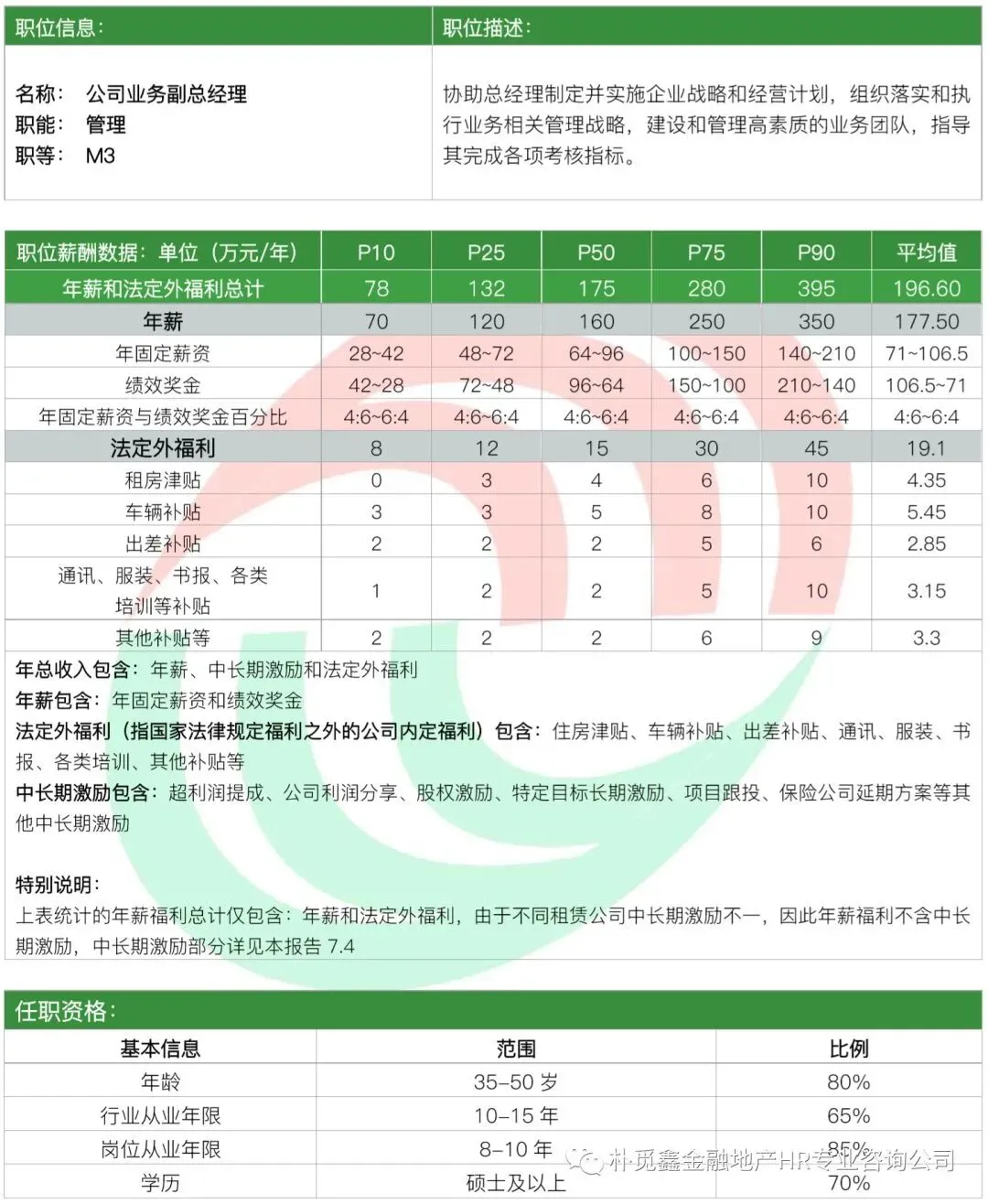 租赁公司各职位薪酬数据详情是薪酬报告的核心内容。一个完整的职位薪酬数据详情包括职位信息、职位描述、职位薪酬数据和职位任职资格表。以下分享一个高层岗位薪酬数据详情表以供参考。