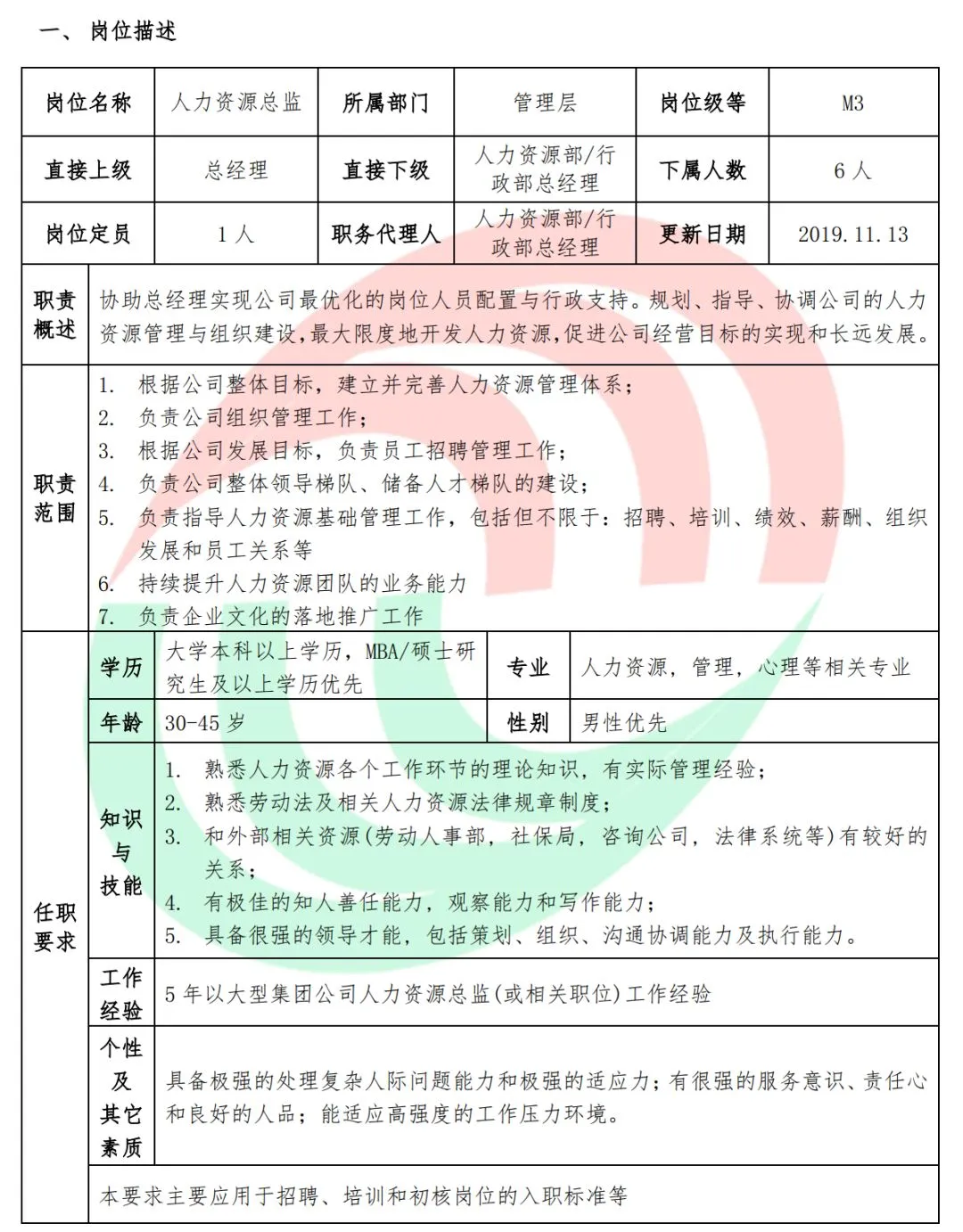 全套人力资源管理制度包含:全套部门职责(13个部门)、全套岗位说明书(55个岗位)、员工招聘与录用管理办法、员工培训管理办法、薪酬管理办法等多项完善的管理制度。以下为部分制度节选内容。
