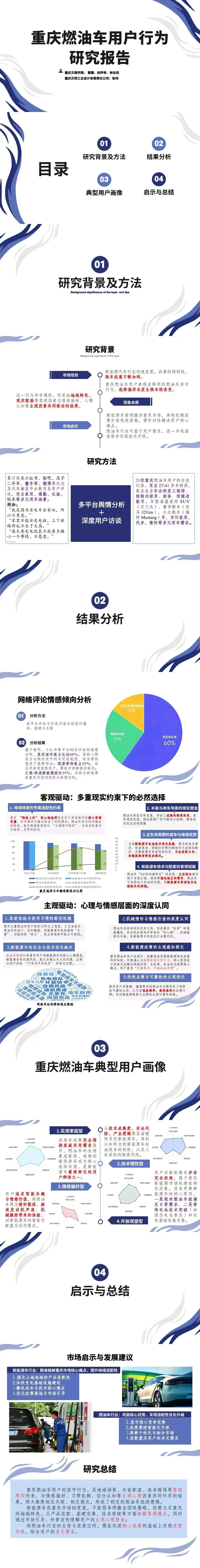 近期,重庆文理学院联合重庆贝特工业设计有限责任公司共同完成了《重庆燃油车用户行为研究报告》,通过多平台舆情分析和深度用户访谈,还原典型用户画像,为行业提供决策参考。