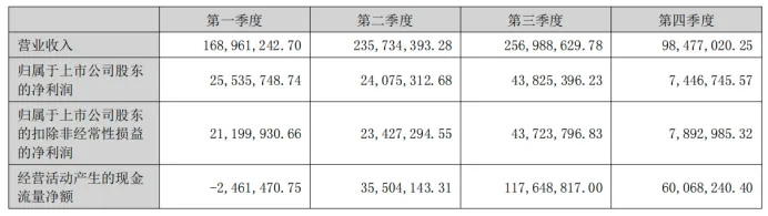 分季度看,业绩波动尤为明显。公司第四季度实现收9847.7万元,归母净利润744.67万元,创下近三年来首次单季度收入未过亿元的纪录。尽管公司表示一、四季度为行业传统淡季,但如此明显的下滑,仍反映出下游需求走弱的现实压力。