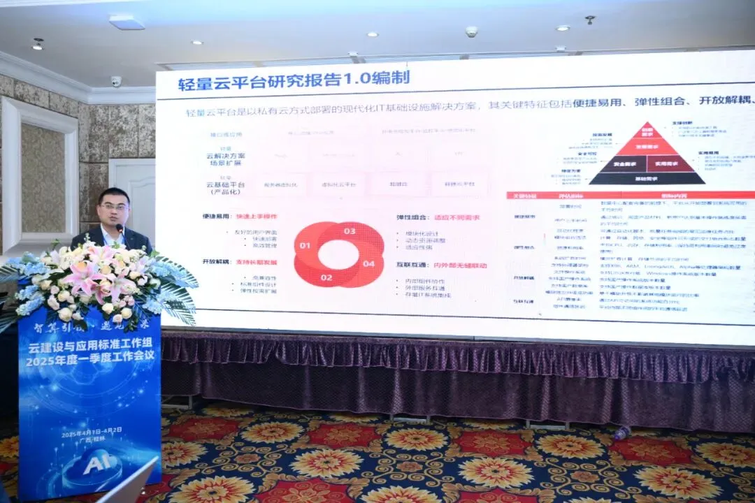 近日,全国信息技术标准化委员会云计算与分布式平台分技术委员会(以下简称“分委会”)云建设与应用标准工作组2025年度一季度工作会议在广西桂林成功举办,会议以“智算引领 · 遇见未来”为核心议题,汇聚了来自全国各地的行业精英与专家,共同探索智算的未来蓝图。