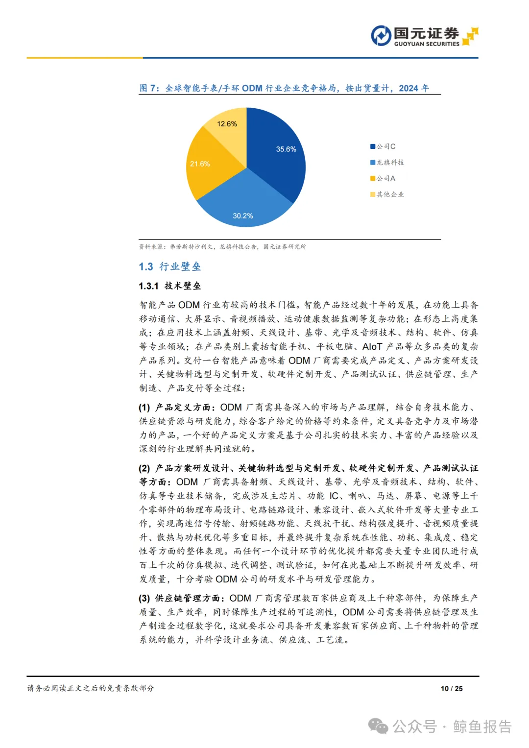智能产品的研发与制造包含众多工序及核心技术,ODM 厂商作为独立完成产品研发 设计、制造、交付全流程的主体,需全面掌握包括但不限于:产品系统方案设计、产 品工业设计及用户界面设计、研发设计仿真技术、硬件设计开发技术(基带、音频、射频、天线、低功耗、电磁电容性、PCB 设计等多个专业方向)、软件开发技术(底 层驱动、中间件、上层应用、算法技术等)、结构设计技术、生物识别技术、声光电 模组设计技术、自动化生产和检测技术等众多领域。通常,智能手机、平板电脑、AIoT 产品等智能产品涉及数十家、上百家供应商提供的超过千种零部件,ODM 厂商产品 设计方案需要实现相关硬件、软件、模组、结构之间的相互配合,反复优化调试达到 大规模稳定量产状态,并经数十道自动化、信息化工序生产制造而成。一方面智能产 品的部件品类及工艺要求复杂,另一方面品牌商不仅要求 ODM 厂商拥有快速迭代产 品设计方案、及时响应市场需求的能力,还对产品制造交付质量与速度有较高的要求, ODM 厂商需具备自动化、信息化、精密化程度较高的先进制造能力,这对智能产品 ODM 厂商的技术积累能力与工艺创新速度提出了很高的要求,因此,头部 ODM 厂 商均为拥有专业技术储备及技术创新能力的先进制造企业。