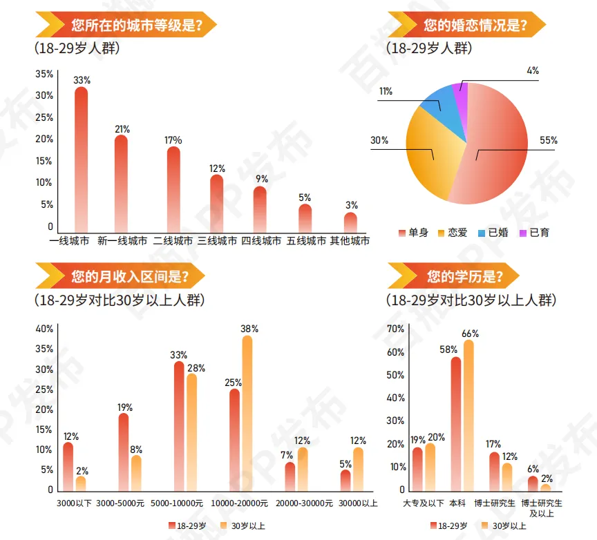 年轻代画像:18-29岁群体占比55%单身、81%本科以上,聚焦300-500元价格带,决策重口碑(73%)、品质与颜值;独饮比例达61%,视威士忌为“自我时刻”。