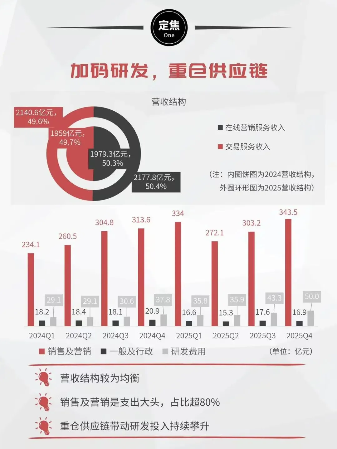 AI驱动营销效率是第三条。164.96亿研发投入大量流向算法和供应链数字化。推荐越精准,商家ROI越高,广告收入天花板越高,用户停留越久。飞轮一旦转起来,外部很难插进来。