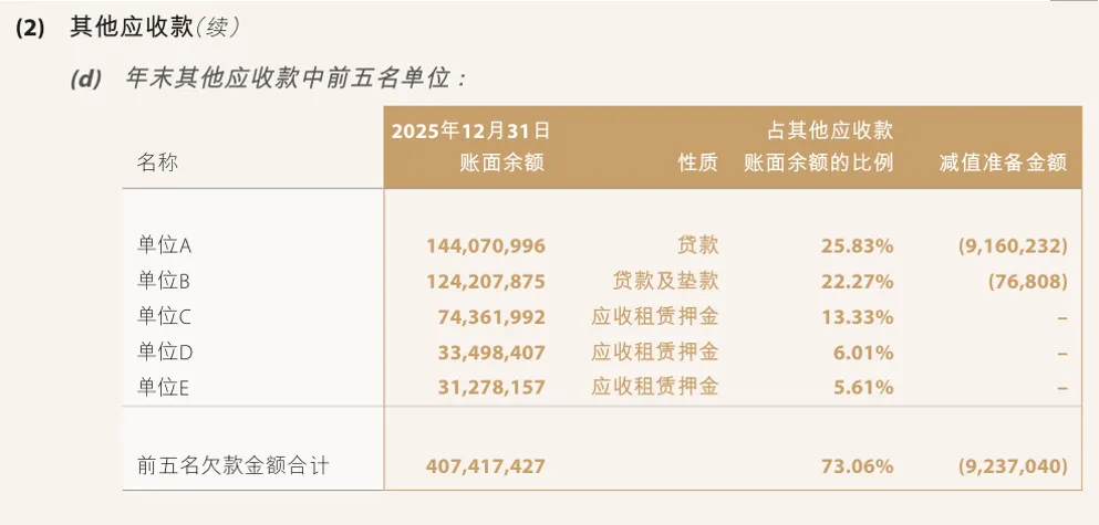 单位A性质为贷款,(9,160,232)的减值金额占比全年一半,这也解释了为何整体的减值比例会从1.87%上升到3.32%。可以确认:贷款的数量虽少,但却是其他应收款中主要的信用风险来源。