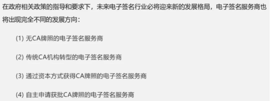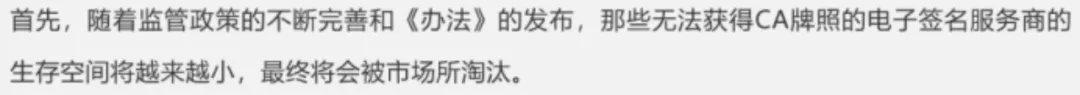 工信部对 CA 的监管,其出发点显然不在于限制行业发展,更不意味着如e签宝公号文章所呈现的那样,会对整个电子签行业造成根本性冲击。