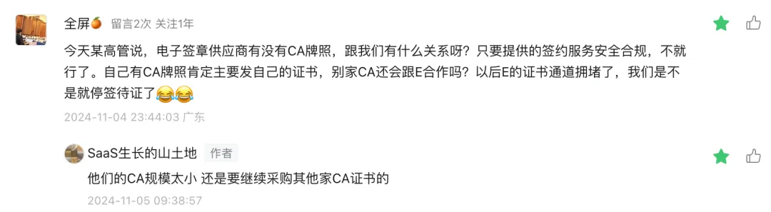 是否要从电子签行业上游的CA中分一杯羹,这属于企业战略问题。
