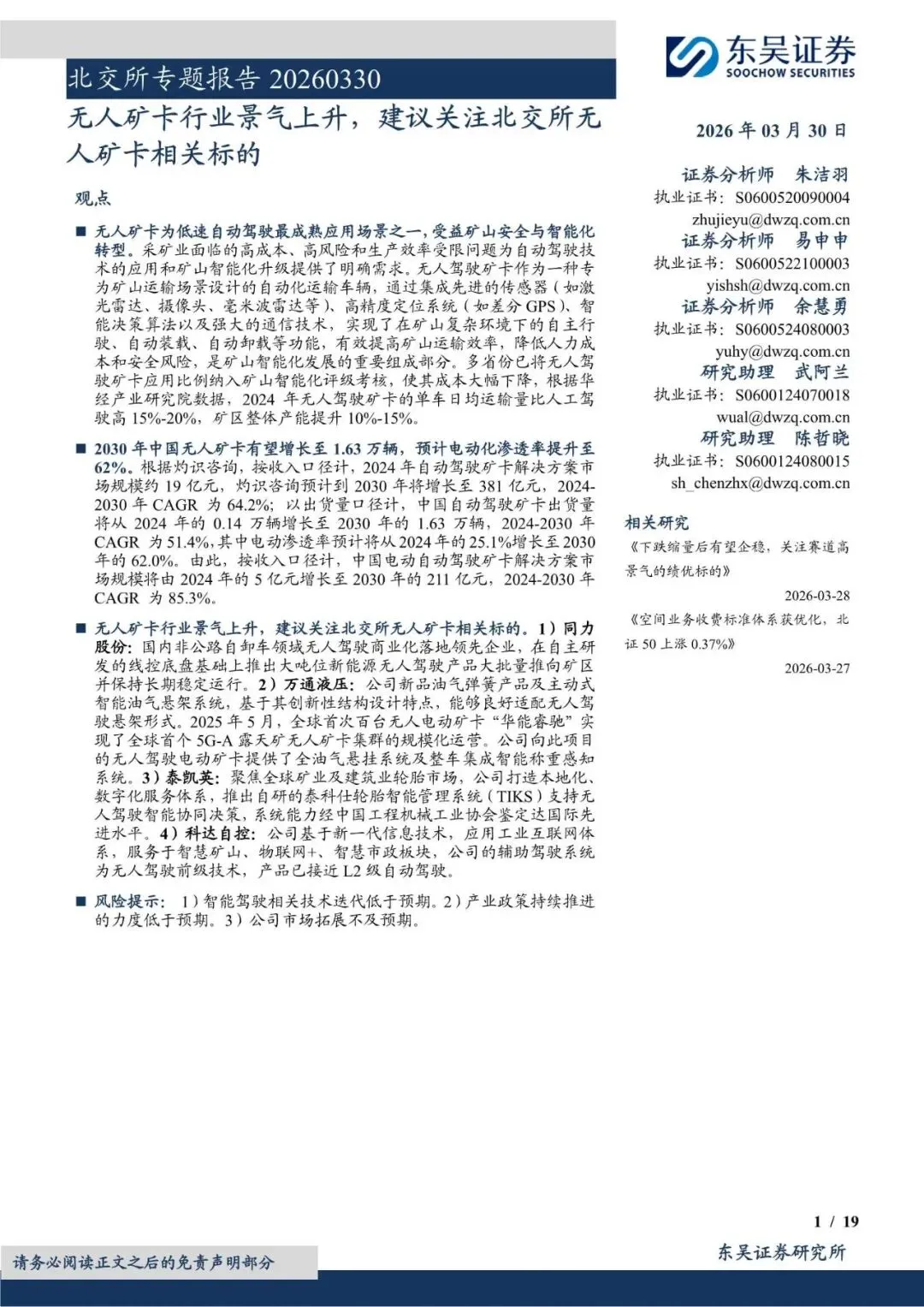 北交所专题报告:无人矿卡行业景气上升,建议关注北交所无人矿卡相关标的-260330-东吴证券-19页