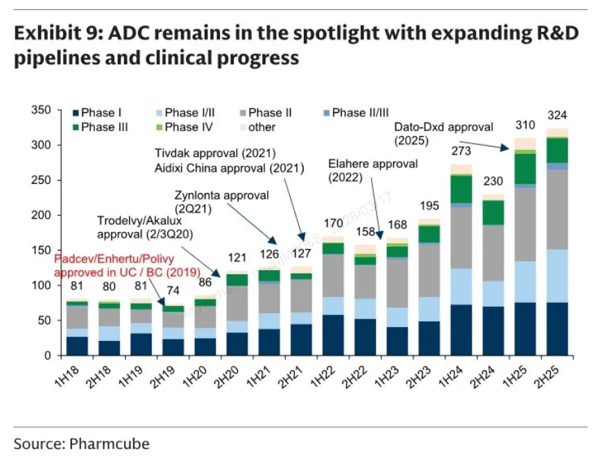 ADC药物凭借 “精准靶向、高效杀伤” 的优势,成为肿瘤领域研发的核心方向,全球研发管线持续扩张、临床进展快速突破,推动ADC成为生物药CDMO行业仅次于GLP-1第二大增长赛道。