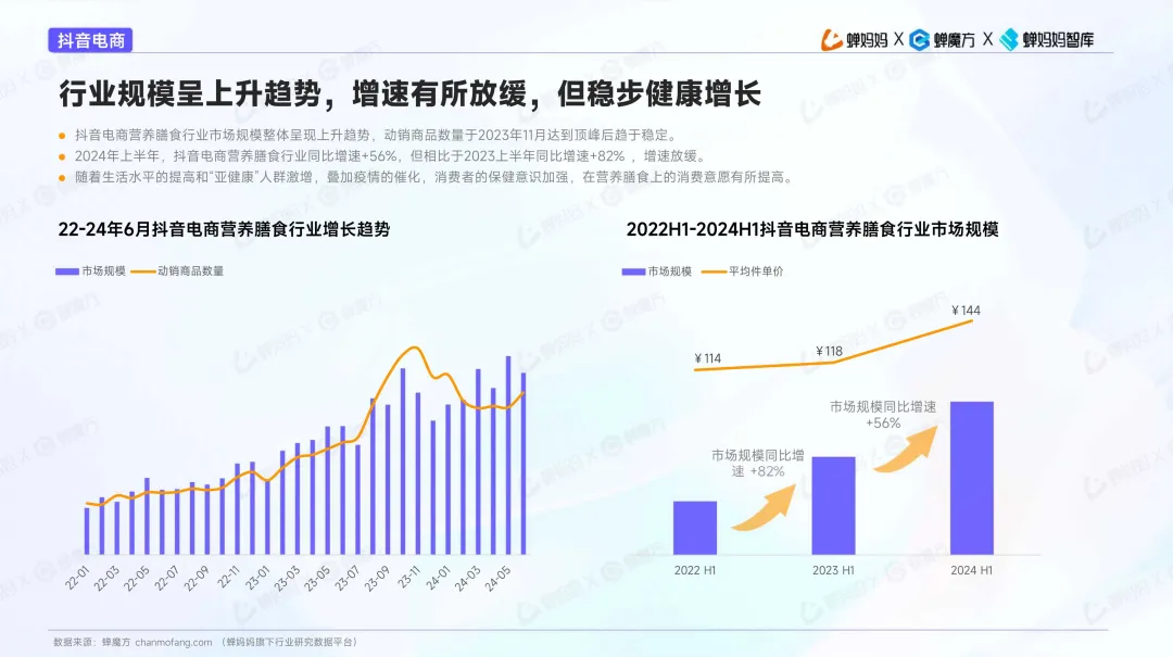 • 海外营养膳食增速迅猛,GMV占比逼近本土品牌:2024年上半年,抖音电商海外营养膳食同比增速达+80%,远超本土膳食的+41%。海外品类GMV占比已从2022年的21%跃升至2024年的45%,差距快速缩小,行业红利窗口显著。
